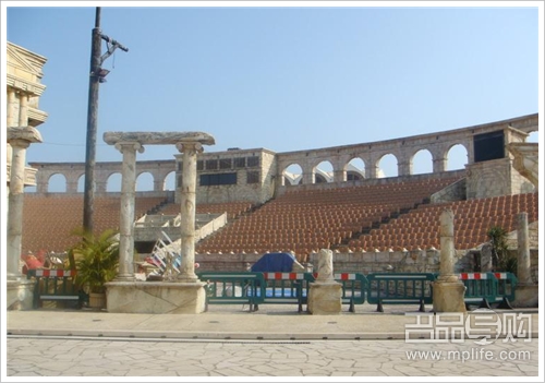 由于上船晚所以换座位票时意外的换到了豪华舱,呵呵,但是,这个喷射飞船确实要比新渡轮晃的厉害,有个女的一上船就趴在前排椅背上,还没开呢就吐上了,我在上豪华舱楼梯时也是晃晃悠悠上的,我怕晕船赶紧在肚脐上贴上了粘有花椒的胶布。晒着太阳老公很快就睡着了,我闭着眼睛半天没有睡着一直在发呆。一个小时后到了。豪华舱先下船,所以我们班里入境什么的非常快。然后出来后看见了金沙赌城我们就朝着那个方向走,大概5分多钟就看见渔人码头了。很多建筑都是仿意大利风格建造的,还有一个小型的角斗场。