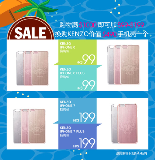 购物满$1000即可加$99-$199换购KENZO价值$490手机壳一个