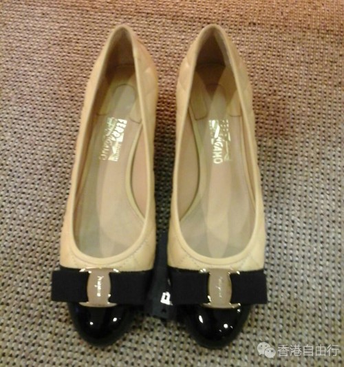 ▲FERRAGAMO蝴蝶结菱形格纹理平底鞋(拼色)