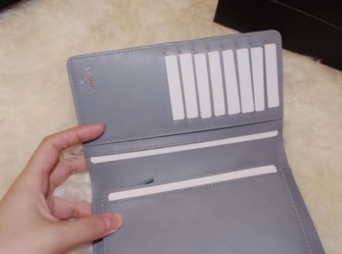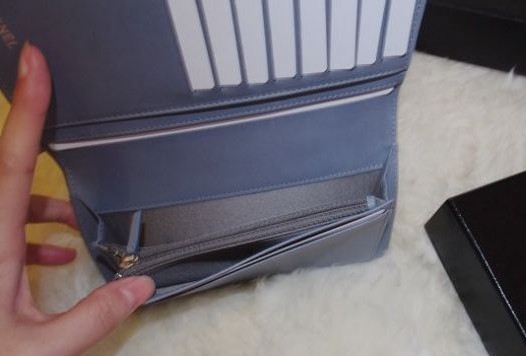 这个款还有一个浅桔红色,那个颜色做成2.55很美,但不知为什么做成钱包就有点廉价的感觉,所以看来看去最后选了蓝色的。