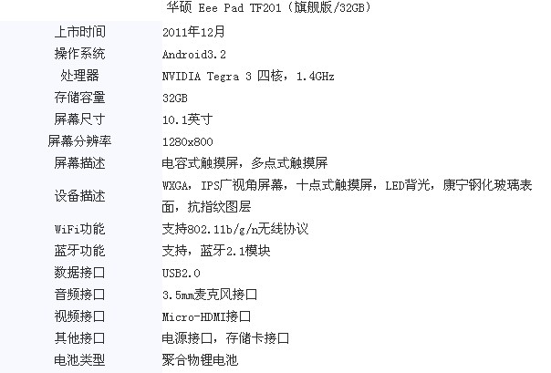 华硕 Eee Pad TF201(旗舰版/32GB)