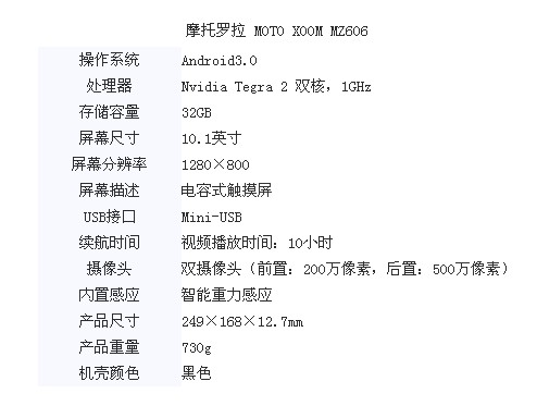 摩托罗拉XOOM MZ606平板电脑