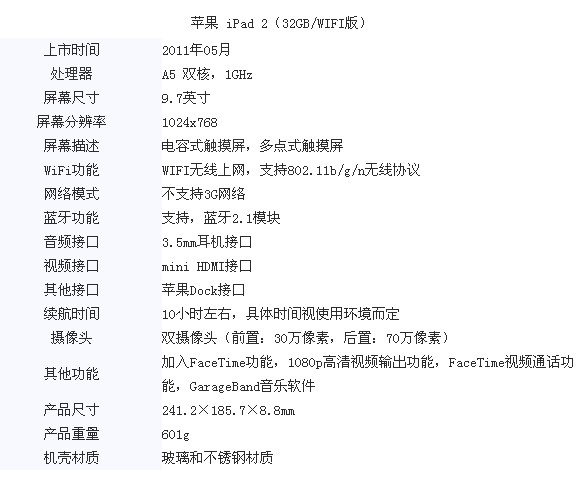 苹果 iPad 2(32GB/WIFI版)
