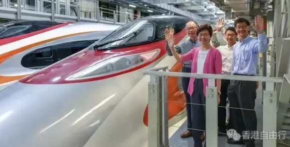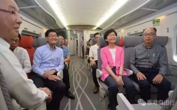 7月9日,香港特区行政长官林郑月娥到访广深港高速铁路香港段石岗列车停放处,参观刚付运到港的高铁列车。她称赞列车的设计和设备完善,相当舒适,并表示特区政府和港铁公司将继续推展高铁项目,务求达到2018年第三季通车的目标,让香港市民可尽早享用快速、便捷的铁路服务。