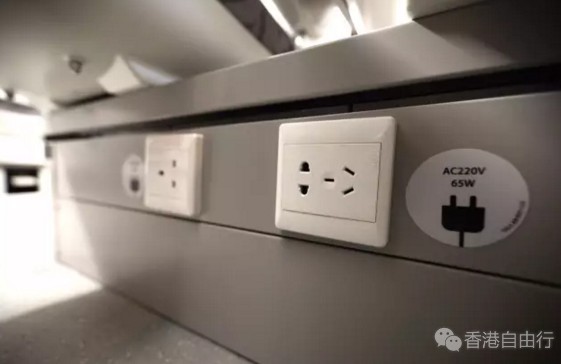 列车中间的六节车厢为二等座,每排五个座位,重点是每个座位都有独立电源插座!毕竟平时在内地坐高铁二等座真的是要靠运气才能碰上插座这东西,加上全车都有WiFi覆盖,去到香港也不担心突然断网啦。