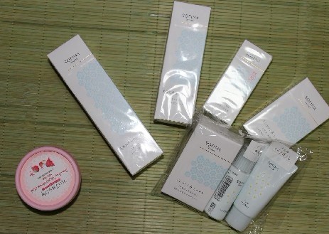 sofina的套装,自己平时一直用的,包括水+乳液+SPF50防晒乳液+一套中样,套装价人民币600元,总结一下买化妆品尖沙咀SOGO的活动一直比铜锣湾要多啊,比路边的专卖店更加合算多了,满额赠送以及套装也有很多