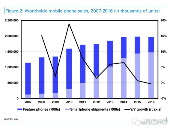 现在,全球手机市场已经停止增长。