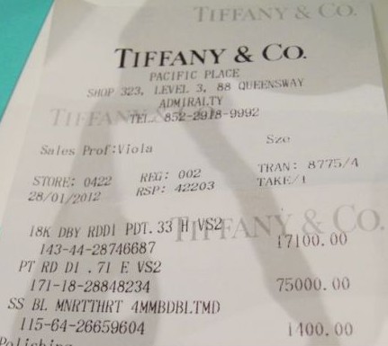 上张发票 MM们可以看到这蒂芙尼三件套都是什么品质 什么价钱啦