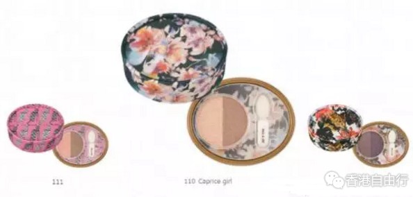 除此之外,新产品中也有外型酷似香水盒的双色眼影,包装同样以出彩的印花图案引人注目。眼影选色带著幼细的珠光质感,妆感偏低调沉稳。