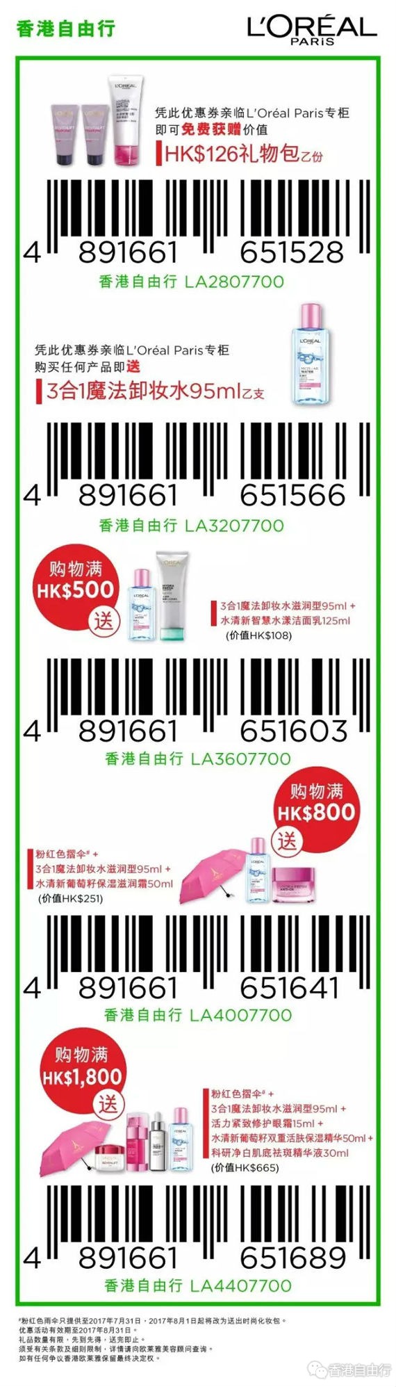 更新更全优惠情报关注L'OREAL Paris官方微信号获取。