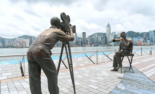大道中段有一些以电影拍摄现场为题材的造型雕塑,包括导演、摄影师、灯光师还有收音师等。