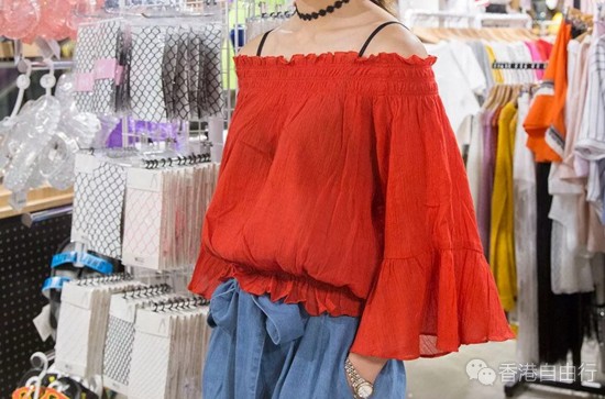 红色一字膊皱布上衣 $99.5(原价:$199)