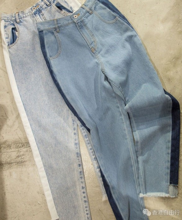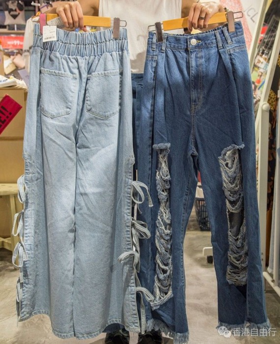 (左)侧绑蝴蝶结阔脚牛仔裤 $149.5(原价:$299);(右)阔脚烂牛仔裤 $149.5(原价:$299)。