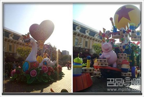 3.2早上起来吃完饭就开始了痛苦的导游购物之旅,都是带去那些指定的店,不管买不买都一个小时才出来。什么都没打算买的我只能听着歌在里面一圈一圈的逛。换了好几个地方之后,终于熬到中午吃饭的时间了。下午安排是去迪斯尼,导游临走之前还不忘推销一番纪念品,大家都心力交瘁的样子,基本都买了。吃完午饭去迪士尼又重新开始美好的生活了~到门口的时候正好碰到飞天游行的开始,也不用等就直接看了,真好~演员都蛮漂亮呢,尤其是白雪公主花车的那几个外国美女,确实有动画片里的风采啊~漂亮~ 忘了说一句,在门口一定记得拿一份地图和节目时间表哦,这样好安排时间,尤其是想我这种跟团的人。