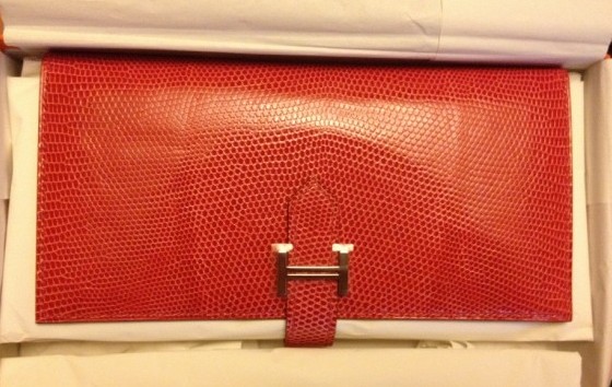 买birkin的当天还买了一个据说留给vip的绝版A5杜鹃红蜥蜴皮bearn,家里的灯是黄光,照片有些失真了,
