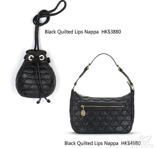 乍看是平实菱格的Black Quilted Lips Nappa系列其实暗藏玄机,设计师于高级皮革上以车线造出排列有序而富立体感的signature嘴唇图案,再缀以高贵优雅的金色细节如拉链及索环等,手工精细。在散发着典雅贵气的黑金配下,系列巧妙地加入了Lulu Guinness的反叛与幽默,不论配衬上班服或晚装均恰如其分。
