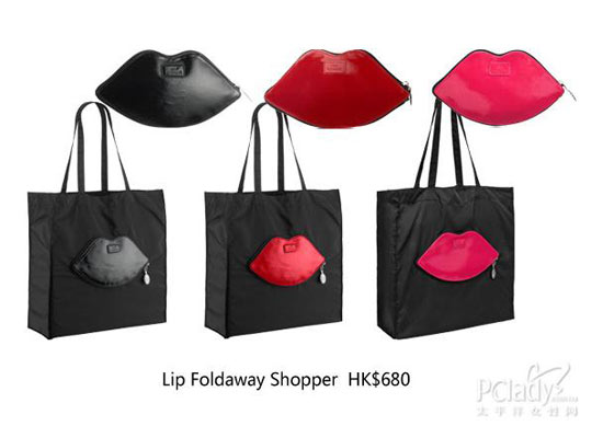 近年,时装界都吹起一股环保热潮,各大品牌都相继推出潮味十足的环保袋,让大家身体力行,减少污染。无独有偶,Lulu Guinness也推出了一款简单时尚的便携式环保袋,充满立体感的嘴唇方正的挂在黑色的环保袋上。只要将黑色袋身摺起,拉上拉链,便可摇身一变成娇小的嘴唇,随身携带,让大家成为一个爱生活爱地球的时尚达人!备有黑色、红色及桃红色叁种选择。