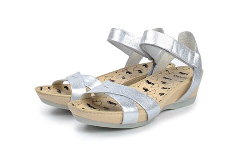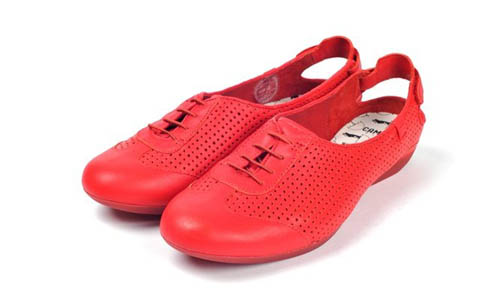 整个系列共包括两款轻便鞋子,分别是一双银色凉鞋及红色缚带平底鞋,充满着夏日感觉。