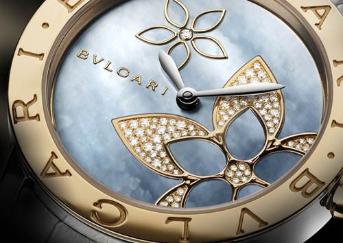 至于出自Mediterranean Eden 系列的Bulgari Bulgari,不设罗马数字小时刻度的设计,特别以精致的花卉图案为主题,并透过明亮切割钻石妆点图案中的花瓣,在珍珠母贝表盘的衬托下,更显精致迷人。