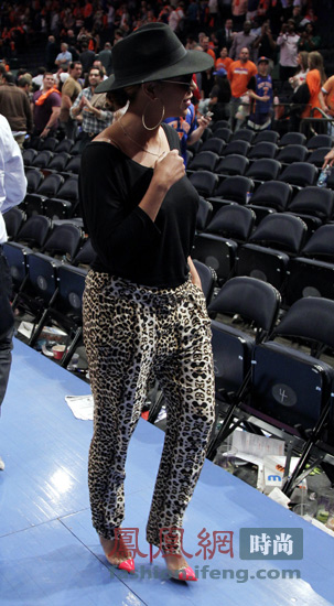 碧昂丝这一身绝对是配鞋子那橙色的鞋头来穿的,从服装到肤色,整体的亮点就是脚下的颜色了。
