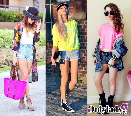 朝气十足的荧光色系单品搭配牛仔热裤,洋溢着无限的青春热情,活力动感。再加以一些街头感的配饰进行简单点缀则更突出了这一份随性与不羁。