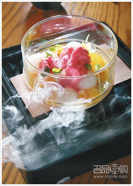 冰镇菜不是新鲜事,芥兰花胶鲍鱼海鲜统统随冰奉上,但视觉与味道却平凡,除了一堆碎冰托底,要搞搞新意?巨型冰块才是王道!最出位的是 AVA,每位客人的枱上都放有整个巨型冰山,这是大厨精心特制的空心水滴形冰球,里面放有阿拉斯加蟹和蓝蟹拆肉制成的沙律,看上去先声夺人,冰冻的快感贯穿整个身体,凉透顶!另外干冰也是餐饮上的后起之秀,不少甜点的盘子底下都放满干冰,奉客前稍加热水,凉烟实时喷出,起到视觉冲击,也为酷热的天气带点凉意!