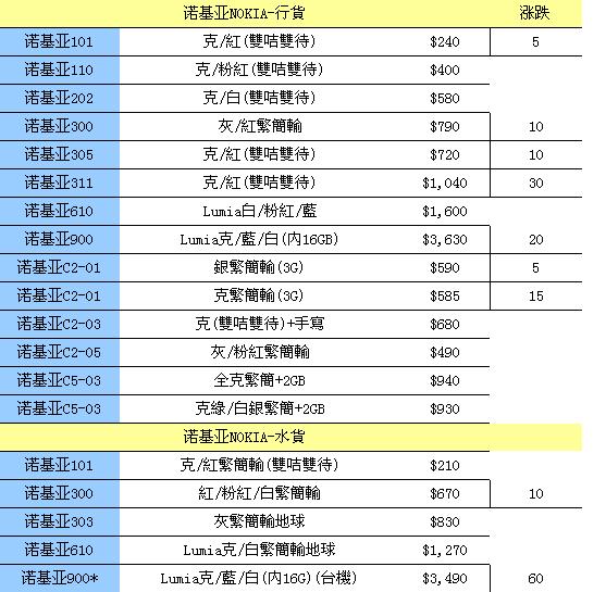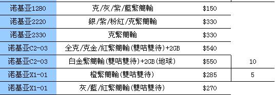 以下报价,如表内无特殊说明,则为原装配件的行货/后行/水货/上台机报价,一般来说原装配件为一电一充,“克”意思为黑色,“繁简英”是指手机所支持的语言,“繁简输”是指手机支持的输入法,“笔画”是指手机的键盘有笔画刻字。