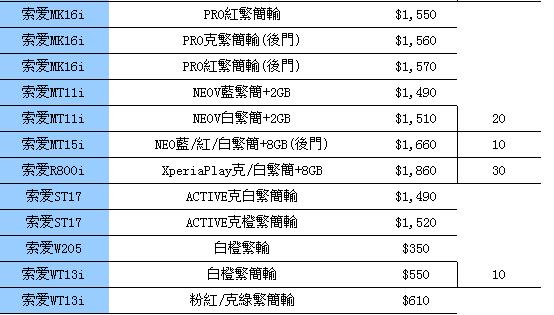 索尼爱立信手机在本周没有大变化,价格有所调整的机型也不过在30港元之内小幅震荡,也可见索爱的手机已经跌至非常低的价位。不过需要提醒用户,大部分索爱的手机已经出现一年多,购买时谨防翻新机。