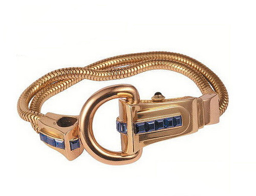 卡地亚和Ostertag合作款,1940年制,黄金镶嵌蓝宝石腕表