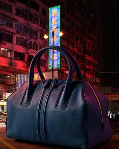 摄影师以数码特效放大的Boston M手袋亦曾于市声鼎扰的油麻地街心,穿行于斑斓霓虹中的一抹蓝色透出坚定与活力,一如这座大城对传统的依恋考究和对未来的蓬勃憧憬。