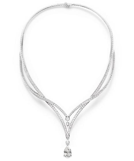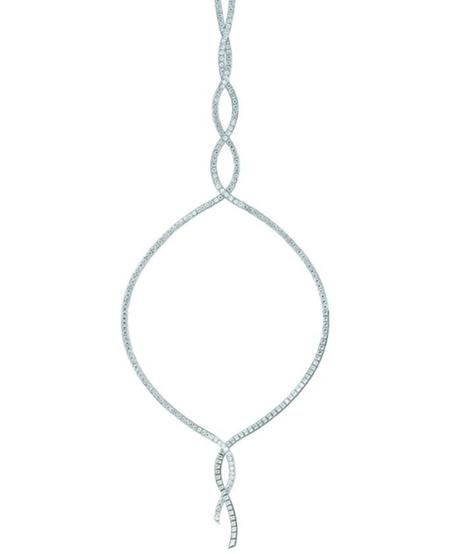 白金材质项链,镶饰290颗圆形美钻,2颗梨形美钻及1颗5克拉梨形美钻