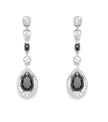 白金材质耳环,镶饰60颗圆形美钻,2颗梨形钻石及4颗梨形黑色尖晶石