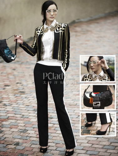 蕾丝外套:MIUMIU ,内搭连衣裙:H&M,黑色复古手提包:MIUMIU ,鱼嘴高跟鞋:RupertSanderson ,配饰:INNIU