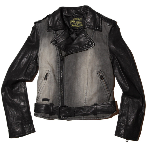 黑色拼牛皮領袖洗水牛仔褸 $3,680.00