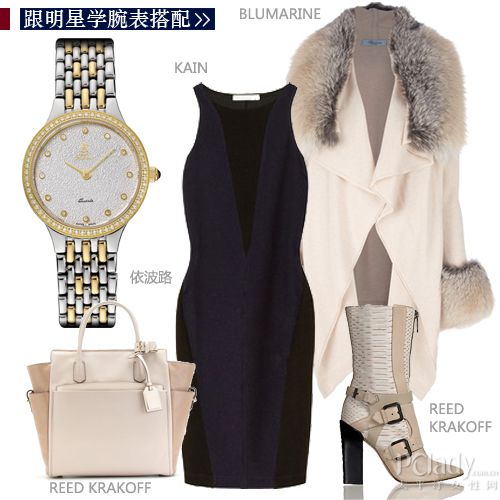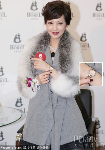 皮草服饰是秋冬的必备单品,可以轻易为你打造出如赵雅芝一般的高贵优雅范儿。但皮草是把双刃剑,穿得不好就会沦为“暴发户”。最好的解决办法就是一切从简,避免过多的配饰来使之更夸张。赵雅芝聪明的只搭配了精钢与黄金相间的腕表,既呼应了皮草的贵气,又带来了一丝娴静。