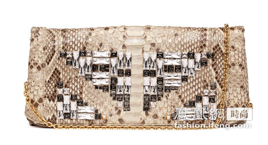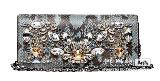 Romantic Chandelier限量晚宴包系列以迷人的色彩、惊艳的材质以及精致的图案,融奢华质感与迷人魅力为一体。特别甄选的顶级材质:原色蟒蛇皮、小羊皮,以及2012秋冬着名的野性豹纹等三种款式皆为手工细作;不同形状的彩色施华洛世奇水晶以手工嵌刻,规整排列出代表品牌名称的字母M的形状。纵贯国际时尚都会,这个灵感取自欢愉假日氛围的奢华晚宴包系列为每一位追求至臻品质与卓绝品味的都市女性带来节日场合的完美配饰。