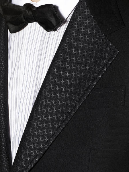 全新的有机毛料质地西装首次登场,翻领处特别饰以经典钻石图纹。柔顺白色无尾晚礼服以亮面或哑光的提花布制成,搭配黑色领结和男士经典乐福鞋。衬衫衣领由夸张款式修饰为经典款,更适合多场合穿着。