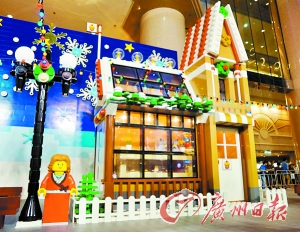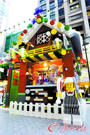步入香港知名地标时代广场,节日气氛扑面而来,露天广场和二楼大堂均为全部由积木“乐高(LEGO)”搭建的“乐高圣诞村”。