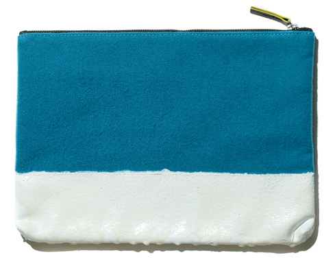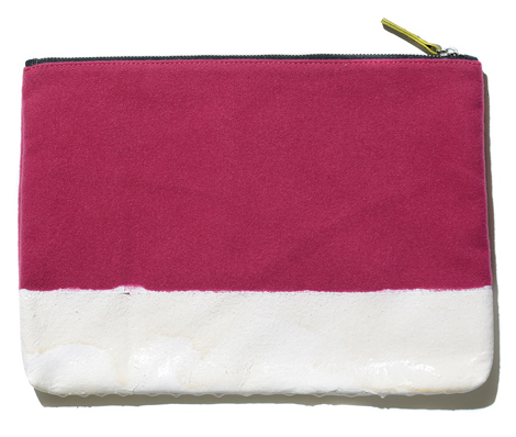 小型收纳袋是我平时必备之物,把笔、U盘、数据线什么的整合在一起,虽然街边4元一个的很多款也很耐用,但总想找一个与众不同的。近来看到这个香港品牌GLUSH的OOPS系列不错。看首图你可能觉得只是普通拼色袋子,但其实是设计师从路边未干的油漆得到灵感,把袋子人手浸泡在油漆里,直接拿起晾干,形成不规则的油漆未干滴下状,再配以本身袋子羊毛绒,两种不同材质的冲击力非常特别。一个值得珍藏的单品。每个售价780元港币。