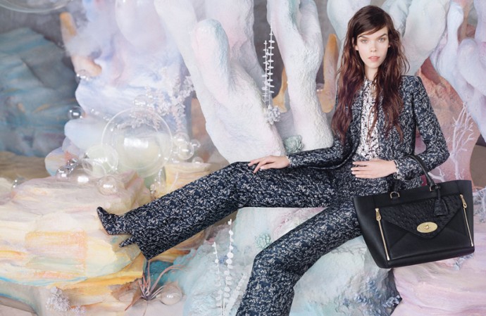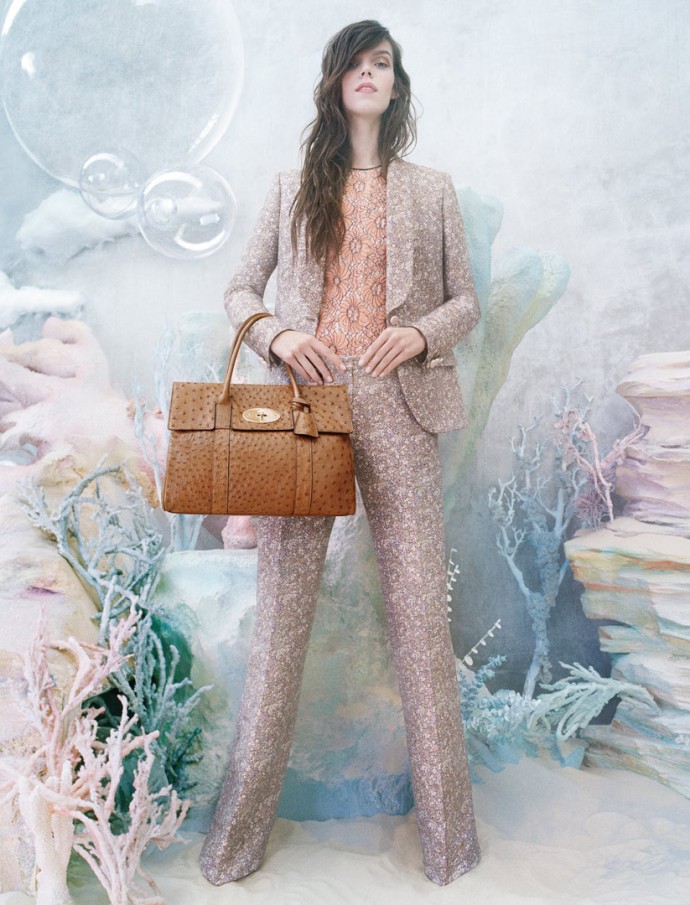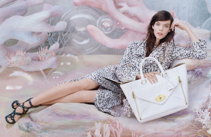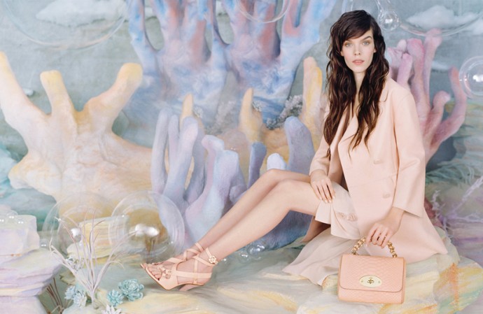 从2011春夏开始,摄影师蒂姆·沃克(Tim Walker)在Mulberry的ultrafeminine设计中融合了他的柔美,超现实的愿景,创建广告活动。2013春夏的合作继续进行了一系列的广告拍摄,造型师Jane How联手摄影师Tim Walker带来的奇幻作品,由加拿大著名模特 Meghan Collison完美演绎,描绘了一个空灵的Meghan Collison在一片糖果色的海底世界的梦幻旅程。