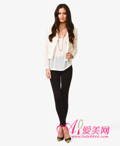 蕾丝斜襟长袖机车夹克外套 Forever21 ¥189.00