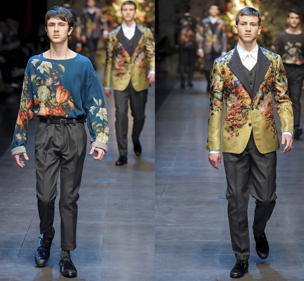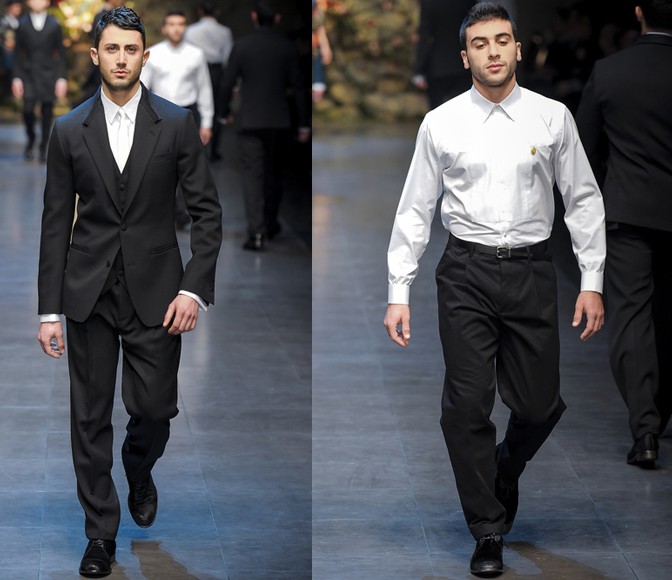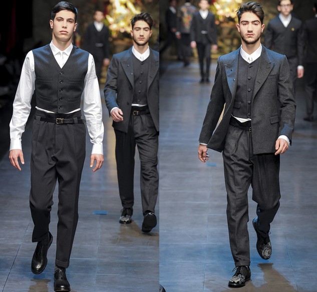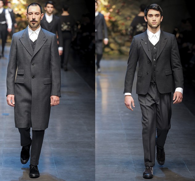 在2013秋冬男装秀场上,设计师杜梅尼科·多尔奇 (Domenico Dolce) 和斯蒂芬诺·嘉班纳 (Stefano Gabbana) 再次找来82位不同年龄、不同身材的西西里男人或者男孩担任模特,虽然他们的身材、台步、长相都没有男模那般完美,却更契合杜梅尼科·多尔奇 (Domenico Dolce) 和斯蒂芬诺·嘉班纳 (Stefano Gabbana) 想传递的原汁原味的意大利风土人情。