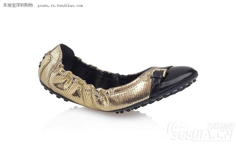 Tod’s经典的松紧边芭蕾舞鞋,精致而简约,女性的魅力,光面小山羊皮搭配鞋尖金属质感的抛光皮,鞋跟处标志性的豆豆细节。