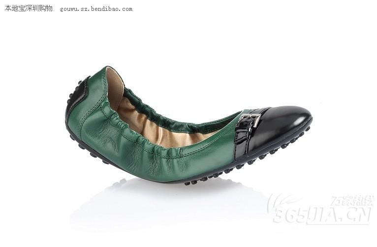 Tod’s绿色侧扣真皮芭蕾舞鞋