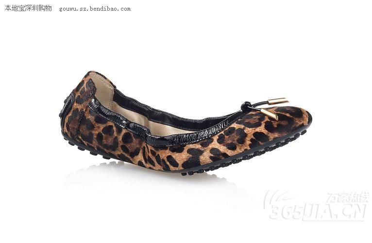 Tod’s永恒经典的芭蕾舞鞋,华丽的豹纹,女性的魅力,鞋跟处标志性的豆豆细节,鞋面系带和个性化的带扣。
