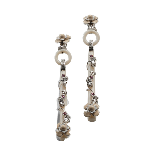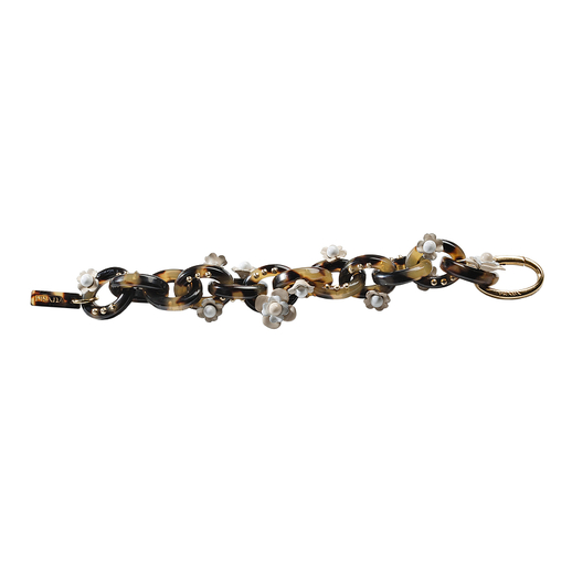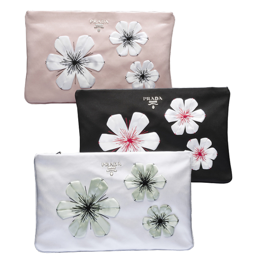 花,一直是设计师们创作春夏系列的主要灵感,不同的 floral print 都為我们打造出一个个温婉娇美的春夏。PRADA 的 2013 春夏系列就是以花為主角,创作总监 Miuccia Prada 以一朵朵造型可爱的花卉去詮释现代女性的梦想、思想与情感,也反映了女性心目中「美」的形象。一系列的饰品也缀上了不同的花饰,在眼镜框上的小红花、玳瑁手链上的杏色小花、黑色手鐲上的粉绿白色小花及等,都予人一种浪漫的少女气息,同时也把女生们点缀得如花般柔美;另外,绣花娟布 clutch 亦是今夏的别緻配件,以它配衬恤衫短裙的 college look,就更可令 style 添上独特的花漾时尚。