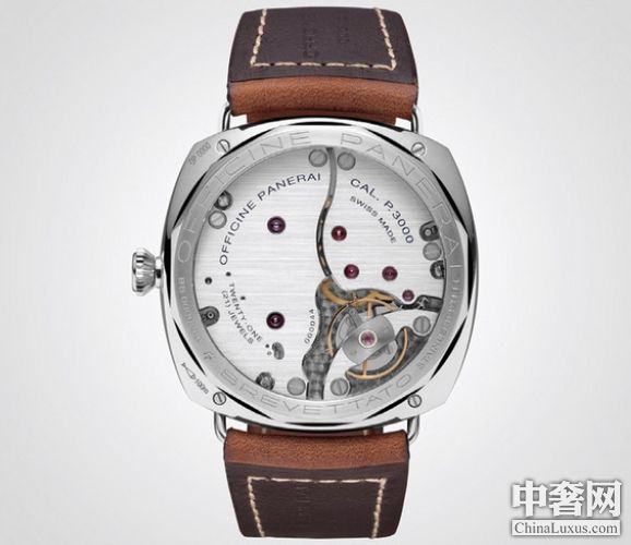搭载表厂自制的 P.3000 手动上链机芯,P.3000 机芯采用典型的大桥板结构,两个发条盒提供三日动力储存,透过表背的透明底盖即可一睹此款机芯的风采。
