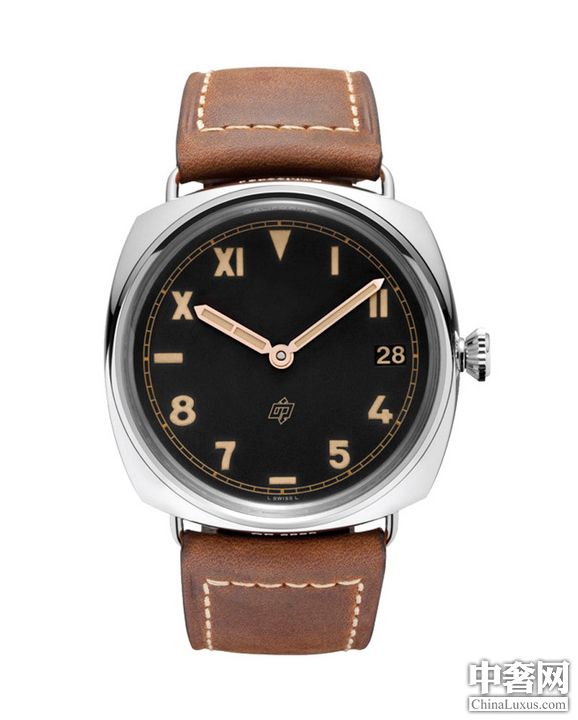 沛纳海 Radiomir California 3 Days(型号 PAM0042)混合罗马数字与阿拉伯数字时刻的设计,虽名为 California Dial 充满前卫美式风情,Radiomir California 3 Days 所纪录的,却是三、四〇年代的怀旧氛围。