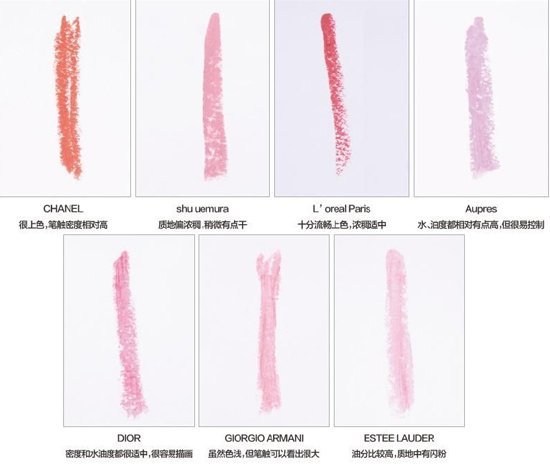 把唇膏的膏体随意地涂抹在白纸上,可以直观地看到唇膏的浓稠度、水润度、油润度、颜色、密度、软硬度,就像不同成分间的配比是为了满足不同的唇部皮肤质地一样,膏体质地的素质也是对应不同人的唇部皮肤状况和个人偏好。