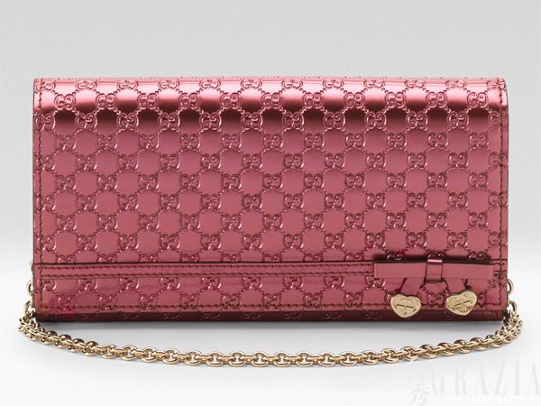 珠光牛皮款搭配的心形Gucci logo所镶嵌的蝴蝶结,极为创意且别致优雅。